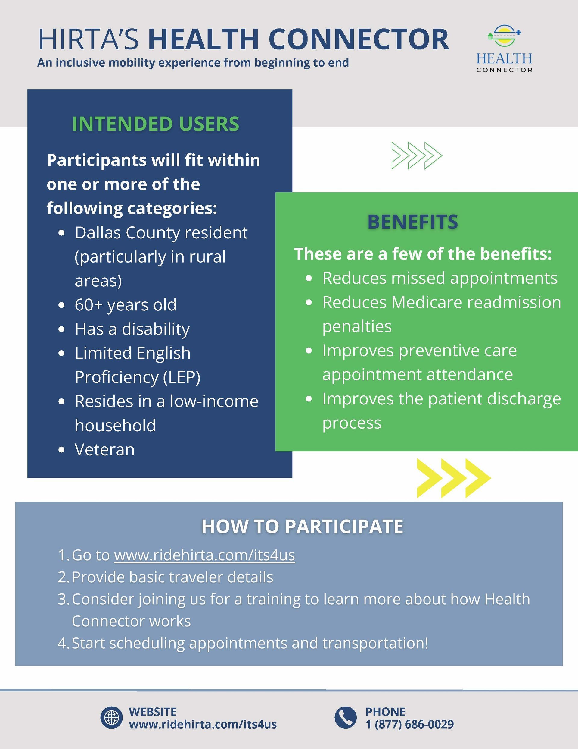 The Heart of Iowa Regional Transit Agency (HIRTA) has worked alongside Arcadis, Capture Management Solutions, the Community Transportation Association of America, the Dallas County Health Department, Flexlynqs, the Institute for Transportation at Iowa State University, and Via to create Health Connector.